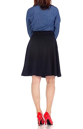 Occasion and How to wash: The flared knee length skirt suits at any occsions upon the matching tops and shoes. If you wear it with a T-shirt, you can make a easy casual style with it. And also, it is perfect as a daily office wear.